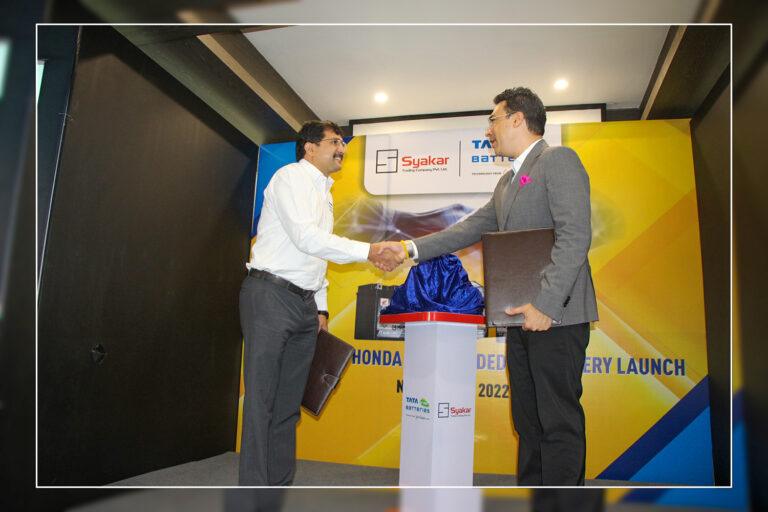 काठमाडौं, ६ साउन । नेपालका लागि होण्डा मोटरसाइकल तथा स्कुटरको आधिकारिक बिक्रेता स्याकार ट्रेडिङ कम्पनी टाटा ग्रीन ब्याट्रीको आधिकारिक बिक्रेताको रूपमा नियुक्त भएको छ।