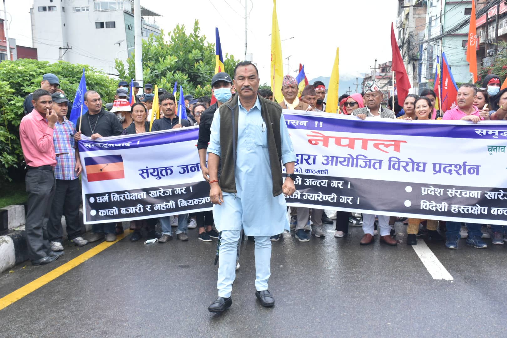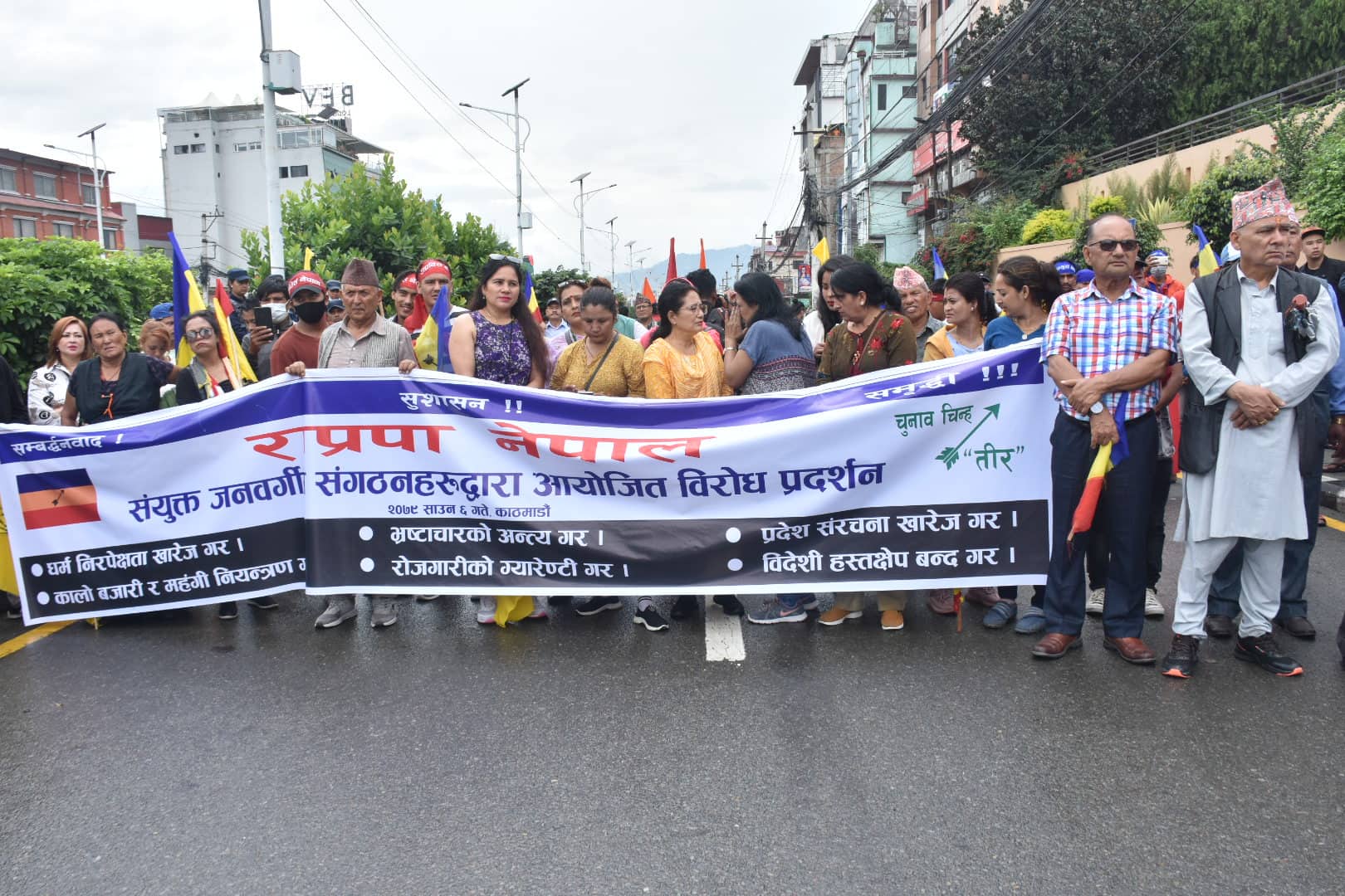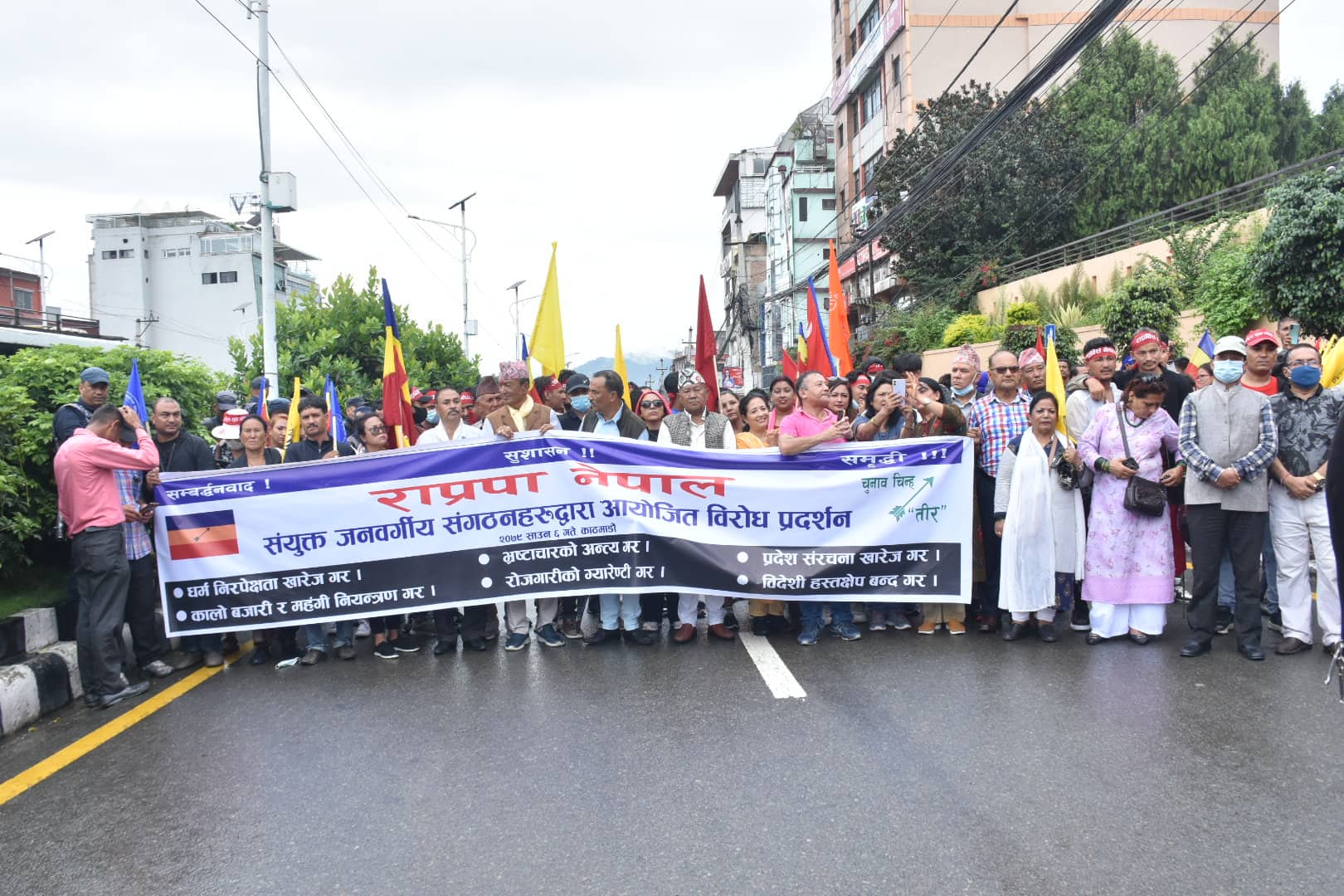 काठमाडौं, ६ साउन । प्रदेश संरचना खारेजी, धर्म निरपेक्षताको खारेजी, भ्रष्टाचारको अन्त्यलगायतको माग गर्दै राप्रपा नेपाल सडकमा उत्रिएको छ ।