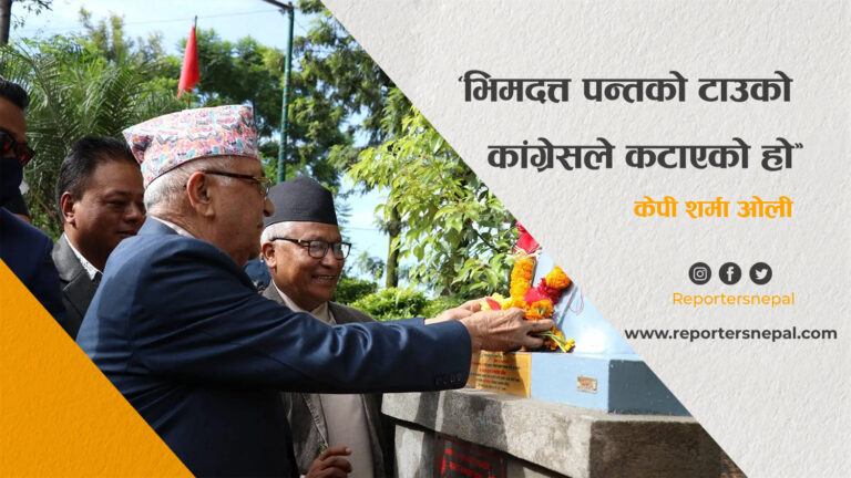 कम्युनिष्ट पार्टीका संस्थापक पुष्पलाल श्रेष्ठको श्रद्धाञ्जली कार्यक्रममा बोल्दै ओलीले भने, डडेल्धुराका भिमदत्त पन्तको टाउको कांग्रेसले कटाएको बताएका छन् ।