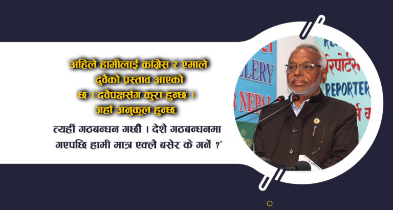 लोसपा नेता महतोले आफ्नो पार्टीलाई कांग्रेस र एमाले दुवै गठबन्धनबाट प्रस्ताव आएको पनि बताए । उनले भने, “अहिले हामीलाई कांग्रेस र एमाले दुवैको प्रस्ताव आएको छ । दवैपक्षसँग कुरा हुन्छ । जहाँ अनुकूल हुन्छ, त्यहीँ गठबन्धन गर्छौं । देशै गठबन्धनमा गएपछि हामी मात्र एक्लै बसेर के गर्ने ?”