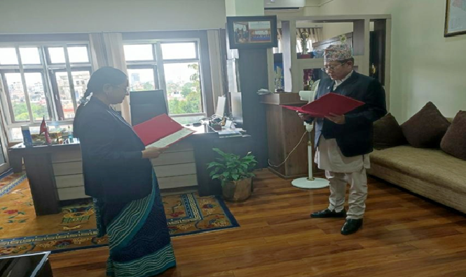 नवनियुक्त अध्यक्ष श्रेष्ठले बैंक तथा वित्तीय संस्था सम्बन्धी ऐन २०७३ को दफा १२७ (२) बमोजिम नेपाल राष्ट्र बैंकका डेपुटी गभर्नर डा.नीलम ढुङ्गाना तिम्सिना समक्ष बिहीबार पद तथा गोपनियताको शपथ ग्रहण गरेका हुन् ।