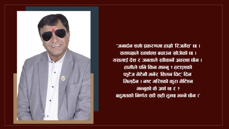 काठमाडौं, १३ साउन । राष्ट्रिय सभामा विपक्षी दलका नेता खिमलाल भट्टराईले निवर्तमान अर्थमन्त्री जनार्दन शर्मालाई संसदीय विशेष समितिले ‘क्लिन चिट्’ दिए पनि देश र जनताले स्वीकार नगर्ने बताएका छन् ।