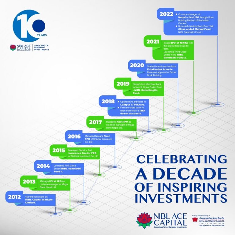 काठमाडौं, १५ साउन । नेपाल इन्भेष्टमेन्ट बैंकको पूर्ण स्वामित्वमा रहेको एनआईबिएल एस क्याप्टिल लिमिटेडले मर्चेन्ट बैंकिंग तथा इन्भेष्टमेन्ट बैंकिंग क्षेत्रमा सेवा प्रदान गर्दैआएको आज १० वर्ष पूरा भएको छ ।