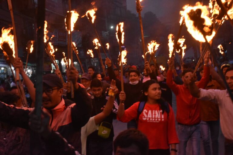 काठमाडौं, १५ साउन । नेत्रविक्रम चन्द ‘विप्लव’ नेतृत्वको नेकपानिकट विद्यार्थी संगठन अनरास्ववियू क्रान्तिकारीले सरकारविरुद्ध मशाल जुलुश निकालेको छ ।