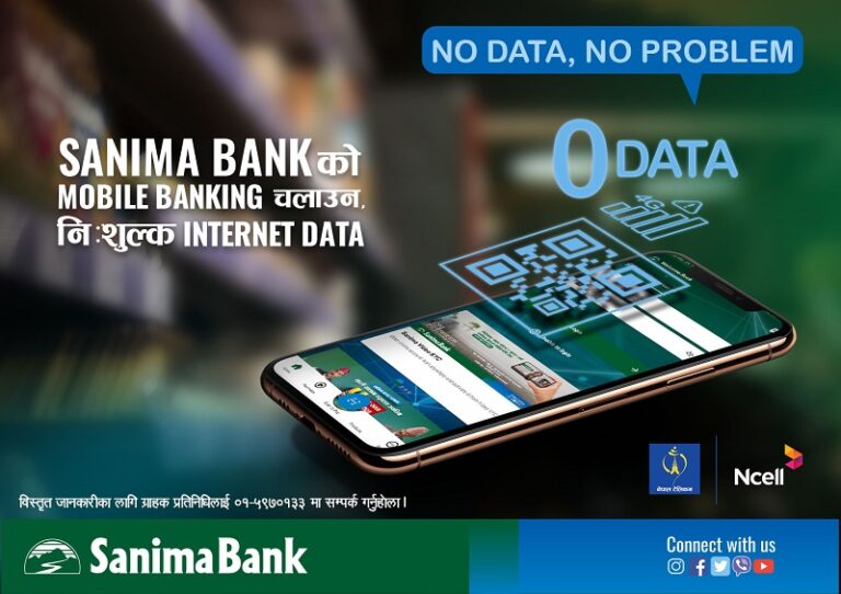 काठमाडौं, १६ साउन । सानिमा बैंकले आफना ग्राहकहरुलाई “No Data, No Problem” योजना अन्तर्गत मोबाइल बैंकिङ्ग सेवा प्रयोग गर्न निःशुल्क इन्टरनेट डाटा उपलब्ध गराउने भएको छ ।