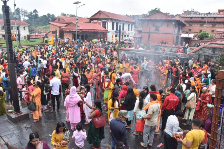 काठमाडौँ,१६ साउन । साउने सोमबारका अवसरमा पशुपति क्षेत्रलगायत देशभरका शिवालयमा विगतका दुई सोमबारभन्दा बढी भक्तजनको भीड लागेको छ । साउनको तेस्रो सोमबार आज बिहान ३ः१५ बजेदेखि नै पशुपतिनाथ मन्दिरका चार ढोका भक्तजनको दर्शनका लागि खुला गरिएको पशुपति क्षेत्र विकास कोषका प्रवक्ता रेवतीरमण अधिकारीले राससलाई जानकारी दिए । दर्शनका लागि लाखौँ भक्तजन अहिले पनि पशुपति क्षेत्रमा लाममा बसेको उनको भनाइ थियो ।