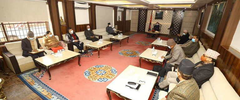 प्रधानमन्त्री एवं नेपाली कांग्रेसका सभापति शेरबहादुर देउवाको अध्यक्षमा आज गठबन्धनका शीर्ष नेताहरुको बैठक प्रधानमन्त्री निवास बालुवाटरमा बसेको थियो । बैठकले आगामी निर्वाचनमा पाँच दलीय गठबन्धनबीच चुनावी तालमेल गरी अगाडि बढ्ने निर्णय गरेको प्रधानमन्त्रीको सचिवालयले जनाएको छ ।