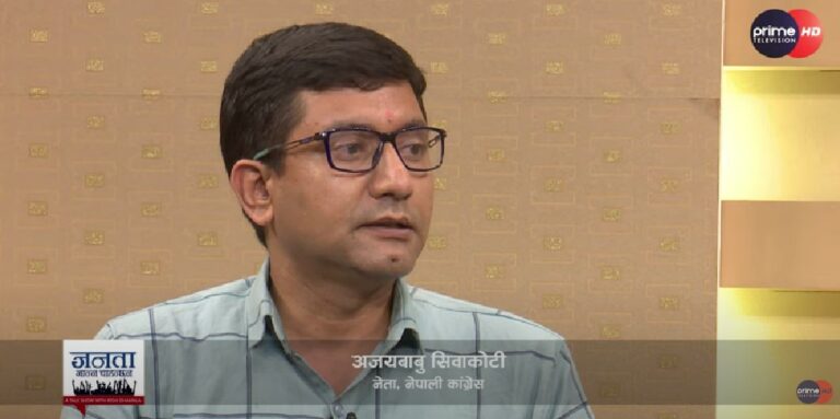 काठमाडौं, २४ साउन । नेपाली कांग्रेसका केन्द्रीय सदस्य अजयबाबु शिवाकोटीले पाँच दलीय गठबन्धन चुनावसम्मै कायम हुन आवश्यक रहेको बताएका छन् । यद्धपी उनले कांग्रेस एक्लै चुनावमा जान पनि सक्षम रहेको र नडराएको स्पष्ट पारेका छन् । हिजो राति प्राइम टिभीबाट प्रसारण भएको जनता जान्न चाहन्छन् कार्यक्रममा पत्रकार ऋषि धमलासँग कुरा गर्दै उनले यस्तो बताएका हुन् ।