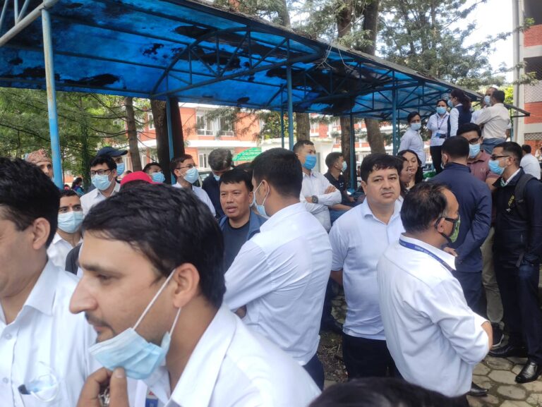 हिजो उनीहरुले अर्थ मन्त्रालयमा धर्ना दिएका थिए । आइतबार सार्वजनिक भएको तलबमानमा बजेटको घोषणाविपरीत तलब बढाइएको भन्दै नायब सुब्बा र त्यसभन्दा तल्लो तहका कर्मचारीहरू आन्दोलनमा उत्रिएका हुन् । तस्विर : मुकुन्द कालिकोटे, रिपोर्टर्स नेपाल डटकम