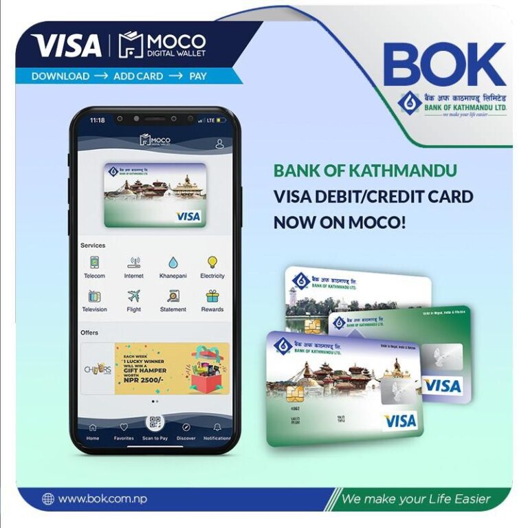यस संगै बैंकका कार्डबाहक ग्राहकहरुले आफ्नो कार्डको प्रयोग गरी विभिन्न सेवाहरुको भुक्तानी तुरुन्तै गर्न सक्नुहुनेछ । यस सेवाको प्रयोग गर्न ग्राहकहरुले मोको डिजिटल वालेटको एप गुगल प्लेस्टोर र एप स्टोरबाट डाउनलोड गरी आफ्नो बैंक अफ काठमाण्डूको डेबिट तथा क्रेडिट कार्ड लिंक गर्नुपर्नेछ ।