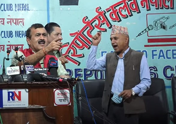 साउन २६, काठमाण्डौ । रिपोर्टस क्लब नेपालमा राजनीतिक दलका नेताहरु साक्षात्कार कार्यक्रममा झगडामा उत्रिएका छन् । ऋषि धमलाको सभापतित्वमा बहस कार्यक्रम चलिरहँदा नेपाली कांग्रेस र नेकपा एमालेबा नेताहरु झगडामा उत्रिएका हुन् । मंसिर चार गते हुन गइरहेको प्रदेश र प्रतिनिधिसभाको निर्वाचनको विषयमा धारणा व्यक्त गर्ने क्रममा नेताहरु वादविवाद गर्न पुगेका हुन् ।