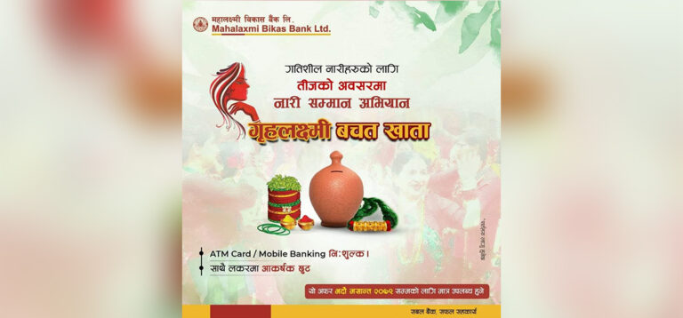 काठमाडौं, भदौ ६ । महालक्ष्मी विकास बैंकले हरितालिका तीज – २०७९ को अवसरमा नारीलाई लक्षित गरेर ‘नारी सम्मान अभियान’ सार्वजनिक गरेको छ।