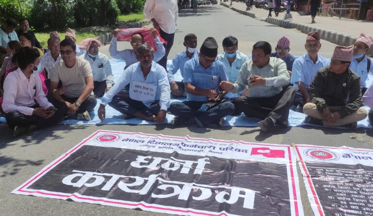 काठमाडौं, ७ भदौ । नेपाल विद्यालय कर्मचारी परिषद राष्ट्रिय समितिले पुर्ण सेवा सुविधाको ग्यारेन्टी गर्न माग गर्दै धर्ना कार्यक्रम गरेको छ ।