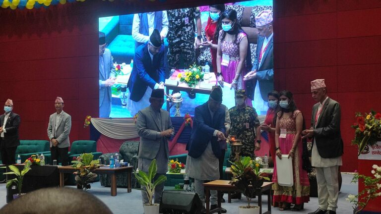 काठमाडौं, ११ भदौ । प्रधानमन्त्री शेरबहादुर देउवाले बुटवलमा निर्माण भएको अन्तर्राष्ट्रिय सम्मेलन केन्द्रको उद्घाटन गरेका छन् । सङ्घीय सरकारले बुटवल उपमहानगरपालिका–८ रामनगरमा निर्माण गरेको अन्तर्राष्ट्रिय सम्मेलन केन्द्रको आज एक समारोेहका बीच प्रधानमन्त्री देउवाले उद्घाटन गरेका हुन् ।