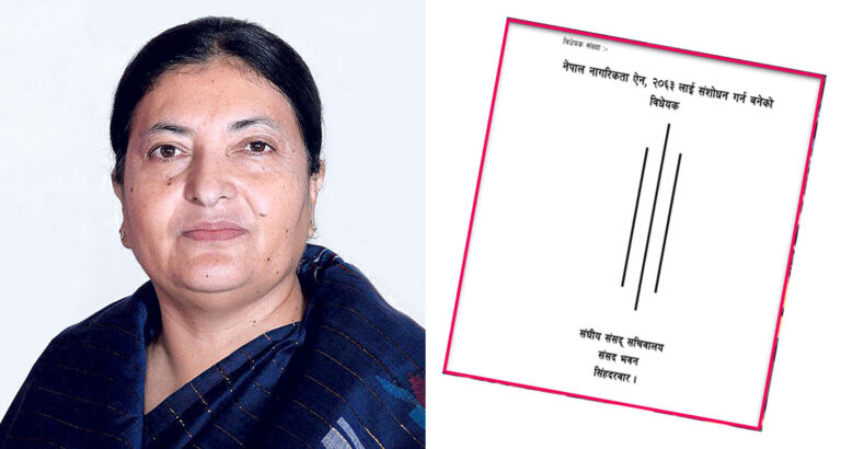 काठमाडौं, भदौ, १२ । राष्ट्रपति विद्या भण्डारीले ‘नेपाल नागरिकता (पहिलो संशोधन) विधेयक, २०७९’ प्रमाणीकरण नगरी पुनः संसद्मा फर्काएको विषयमा लोकतान्त्रिक समाजवादी पार्टी (लोसपा) का नेताहरूले चिन्ता व्यक्त गरेका छन् ।