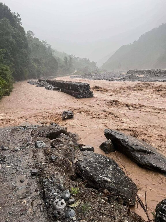 सिन्धुपाल्चोकमा बाढी : सडक अवरुद्ध , हेलम्बुको फाँट ढुवानमा