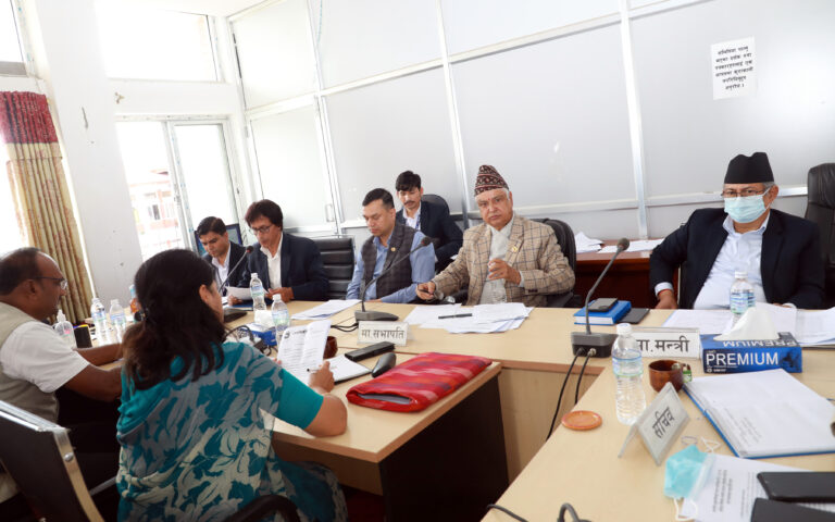 काठमाडौँ,१३ भदौ । राष्ट्रिय सभा, विधायन व्यवस्थापन समितिको सोमबार सिंहदरबारमा बसेको बैठकमा सहभागी हुँदै गृहमन्त्री बालकृष्ण खाँणलगायत । तस्बिर : रत्न श्रेष्ठ, रासस