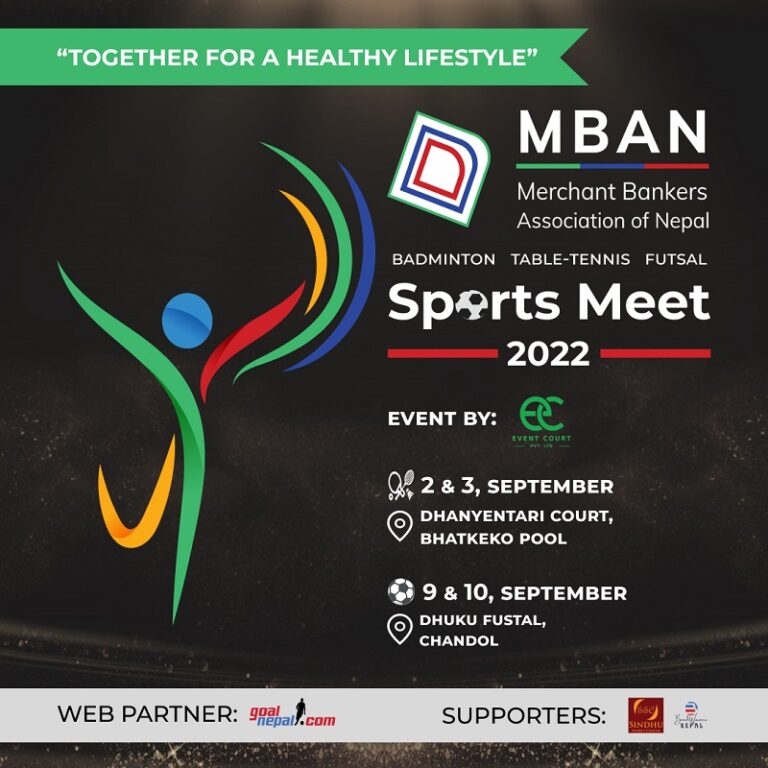 काठमाडौं, १५ भदौ । नेपाल मर्चेन्ट बैँकर संघको संयोजकत्वमा ‘Together for a Healthy Lifestyle’ भन्ने नारासहित पहिलो पटक “एमबान स्पोर्टस मिट २०२२” (“MBAN Sports Meet 2022”) अन्र्तगत विभिन्न खेलकुद प्रतियोगिताहरु आयोजना गर्न लागीएको छ ।
