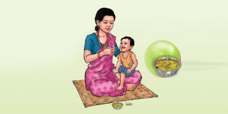पार्वतीकी बुहारी कल्पना विक बच्चा बिरामी हुँदा पहिले जस्तै गरी खान मन नगर्ने र आफूले दूधसँगै विभिन्न खाने कुरा मिलाएर जाउलो जस्तै गिलो भात बनाएर खुवाउँदा अलिअलि गरी खान मन गरेकाले पटकपटक खुवाउने गरेको बताउछिन् । “एक्लैले मेहनत गर्दा बच्चाले खान्न, म, सासूआमा र घरका अन्य सदस्य मिलेर खाना खुवाउँछौँ”, उनले भनिन्, “बच्चालाई ठोस खानेकुरा पनि चाहिन्छ भनेर उसको खानपानमा ध्यान दिन्छौँ ।”