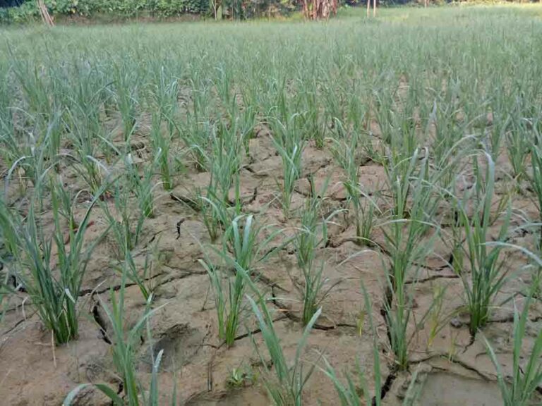 घोराही–६ का किसान बुद्धिराज वलीले छ कट्ठा जमिनमा लगाएको धान सबै सुकेर पहेँलो भएको छ । “साउन पहिलो साता रापेको धान महिनाभर पानी नपाउँदा आशा मरेको थियो, भदौ लागेपछि पानी परेका कारण केही आशा पलाएको छ”, उनले भने । धानका गरामा धाँजा फाटेको थियो, पूरै धान फल्ने आशा त छैन, बीउ उठ्छ कि भन्ने लागेको उनले बताए।