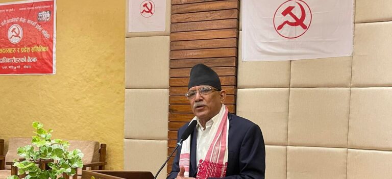 काठमाडौं, २४ भाद्र । नेकपा माओवादी केन्द्रका अध्यक्ष पुष्पकमल दाहाल प्रचण्डले राष्ट्रपति विद्यादेवी भण्डारीले नागरिकता विधेयक प्रमाणिकरण नगरे राजीनामा दिनुपर्ने विकल्प सुझाएका छन् । आज पोखरा विमानस्थलमा पत्रकार भेटघाटमा उनले राष्ट्रपति भण्डारीले विधेयक प्रमाणिकरण नगरे राजीनामा दिनुपर्ने विकल्प रहने बताएका हुन् ।