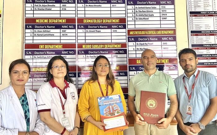 काठमाडौं, २४ भदौ । एनसीसी बैंकले आफ्ना ग्राहकहरुलाई चितवनको भरतपुरमा अवस्थित मनकामना अस्पताल प्रालीमा विशेष छुट प्रदान गर्ने सम्झौता भएको छ ।