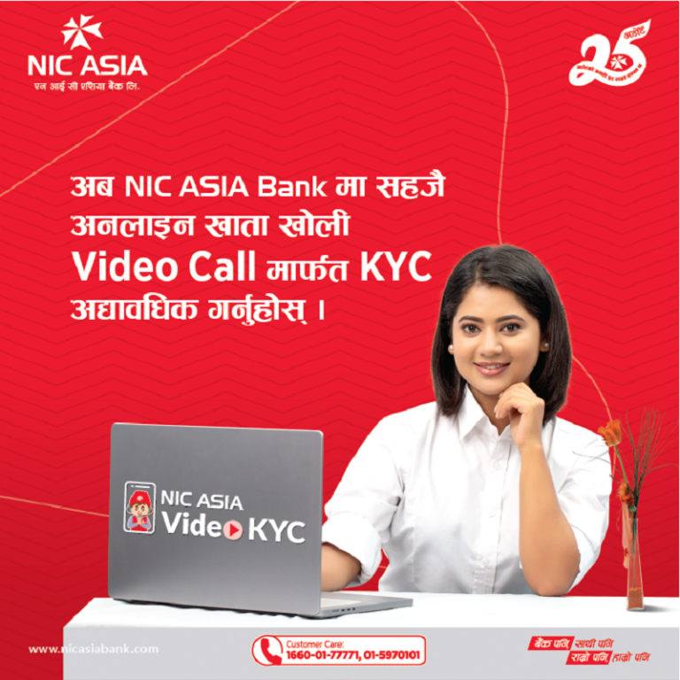 बैंकको वेबसाइट www.nicasiabank.com मार्फत Online बाट खाता खोल्दा ग्राहकहरुलाई KYC विवरण सम्बन्धमा दुइ विकल्प राखिएको छ । जसमा, ग्राहकले आफ्नो KYC आफूलाई पायक पर्ने शाखामा गई उपलब्ध गराउने वा सम्वन्धित बैंक कर्मचारीसँग Video Call गरि उक्त Call मार्फत KYC विवरण अद्यावधिक गर्ने भन्ने विकल्प दिने व्यवस्था गरिएको छ ।