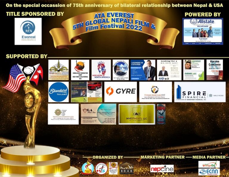 एटिए एभरेष्ट इन्स्योरेन्सको मुख्य प्रयोजन र सुनिल पाठक एजेण्ट अल स्टेट इन्स्योरेन्स कम्पनिको सह प्रयोजनमा नेपाल फिल्म सोसाइटी, ग्लोबल नेपाली फिल्म अवार्ड, गोल्डेन स्टेट मुभी मेकर र ८८४८ मिडिया हाउस एल एल सीले संयुक्त रुपमा ‘पाँचौ ग्लोबल नेपाली फिल्म अवार्ड’ आयोजना गर्न लागेका हुन् । अवार्डका अघिल्ला चार संस्करण कोलोराडो र सनफ्रान्सिस्कोमा भएका थिए ।