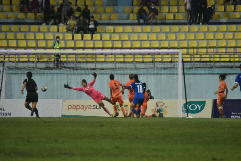महिला साफ च्याम्पियनसिप फुटबल : पहिलो हाफमा भारतसँग नेपालको १–० को अग्रता