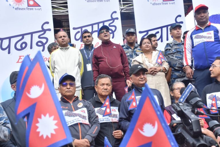 काठमाडौं, १ असोज । नेकपा (एमाले) का अध्यक्ष केपी शर्मा ओलीले नेपाली जनता, लोकतन्त्र, राष्ट्रियता र विकासको अभियानले हार्न नहुने बताएका छन् । संविधान दिवसका अवसरमा एमालेले आज (शनिबार) काठमाडौंमा आयोजना गरेको पदयात्रा (वाकथन) मा उनले मङ्सिर ४ गते हुने प्रतिनिधिसभा र प्रदेशसभाको निर्वाचनमा देश, जनता, लोकतन्त्र, संविधान, भ्रष्टाचार विरोधी अभियान, सुशासनको प्रयास र विकासको अभियानलाई हार्न नदिने बताए ।