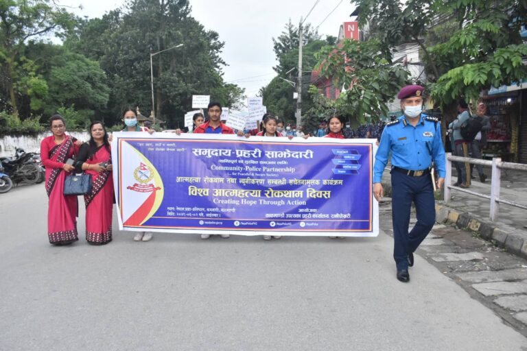 शान्तिपुर्ण एवं सुरक्षित समाजका लागि आत्महत्या रोकथाम तथा न्युनीकरण सम्बन्धि सचेतनामुलक कार्यक्रम नेपाल प्रहरी, स्थानीय तह, समुदाय, सामाजिक संस्था र विभिन्न विद्यालयले संयुक्त रुपमा मनाएका हुन ।