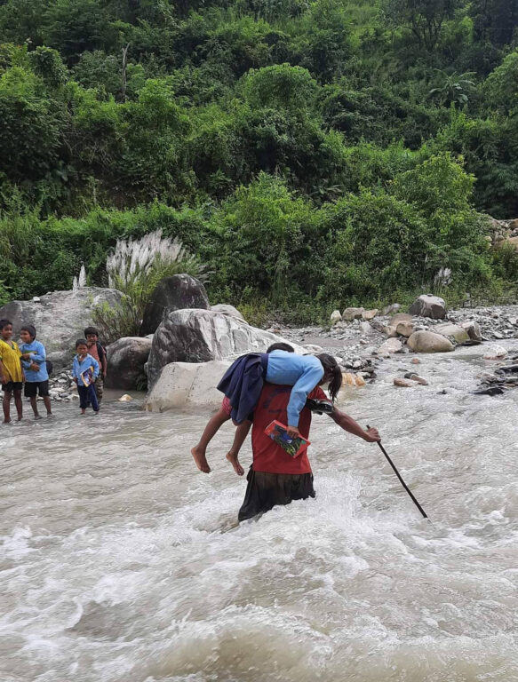 काठमाडौँ,२ असोज । बकैयास्थित कालाभैरव प्राथमिक विद्यालय धेत्रे दमारमा रहेको प्राथमिक विद्यालयका विद्यार्थीलाई परीक्षा दिन लैजाँदै प्रधानाध्यापक चेतबहादुर घले । तस्बिर : अञ्जली थापा, रासस