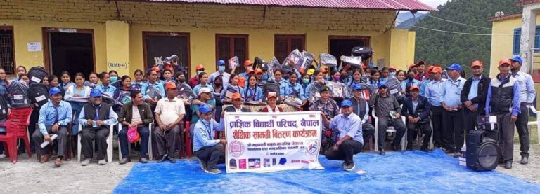 काठमाडौं, ५ असोज । प्राज्ञिक विद्यार्थी परिषद् नेपालले अत्यन्तै उचाइमा रहेको हिमाली जिल्ला मुगुको रारा नगरपालिकाको महाकाली नमुना माविका १०० जना भन्दाबढी विद्यार्थीहरूलाई शैक्षिक सामग्री वितरण गरेको छ । भदौ ३ गते काठमाडौंमा पत्रकार सम्मेलन गरेर सुरु गरेको शैक्षिक सामग्री वितरण अभियानलाई निरन्तरता दिदैँ विद्यार्थी परिषद्ले बुधबार दुर्गम हिमाली जिल्ला छायाँनाथ रारा नगरपालिका वडा नं १ गमगढीमा रहेको श्री महाकाली नमुना माध्यमिक विद्यालय कक्षा ११ र १२ मा अध्ययनरत १०० जना भन्दाबढी विद्यार्थीहरूलाई शैक्षिक सामग्री वितरण गरेको छ ।