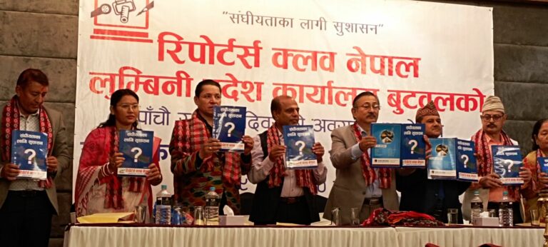 सो अवसरमा रिपोटर्स क्लब नेपालका अध्यक्ष ऋषि धमलाले क्लब स्थापनादेखि अहिलेसम्मका चुनौतीहरुको बारेमा बोलेका थिए। उनले लुम्बिनी प्रदेशका जिल्लाबाट केन्द्रिय राजनीतिमा आफ्नो स्थापना गरेको बताउदै क्लवले जनताको पक्षमा काम गरिरहेको बताए।