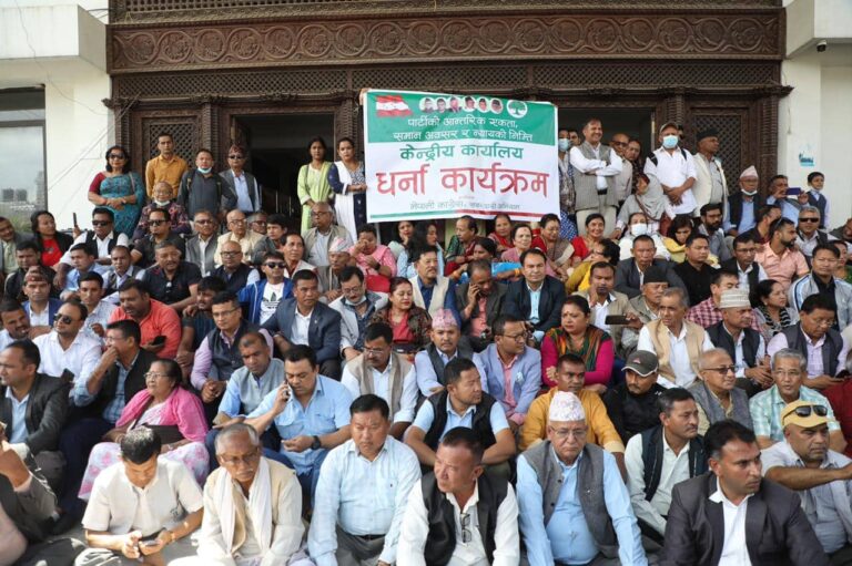 पार्टीभित्र टिकट बाँडफाँट न्यायोचित नदेखिएको भन्दै खबरदारी अभियानमा शेखर–गगन थापा पक्षले धर्ना सुरु गरेको हो ।