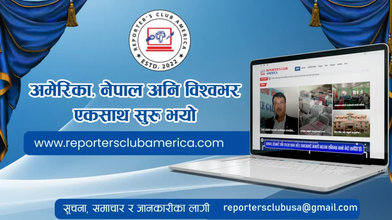 काठमाडौं, १७ असोज । रिपोर्टर्स क्लब नेपालको अमेरिका शाखाले आजबाट रिपोटर्स क्लब अमेरिका डटकम https://reportersclubamerica.com नामक अनलाईन सँस्करण सन्चालनमा ल्याएको छ । अमेरिकामा रहेका नेपाली समुदायलाई लक्षित गरि सन्चालनमा ल्याईएको उक्त खबर पत्रिका नेपाल र अमेरिकाबाट एकसाथ सम्पादन हुने क्लबका अमेरिका शाखा अध्यक्ष किशन रेग्मीले जानकारी दिए ।