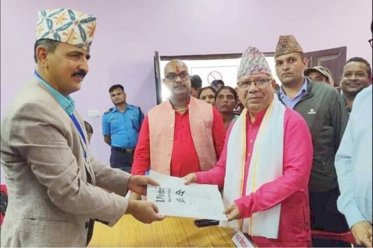 काठमाडौं, २३ असोज । नेकपा (एकीकृत समाजवादी) का अध्यक्ष तथा पूर्व प्रधानमन्त्री माधवकुमार नेपालले रौतहट-१ बाट प्रतिनिधिसभाको लागि उम्मेदवारी दर्ता गराएका छन् ।