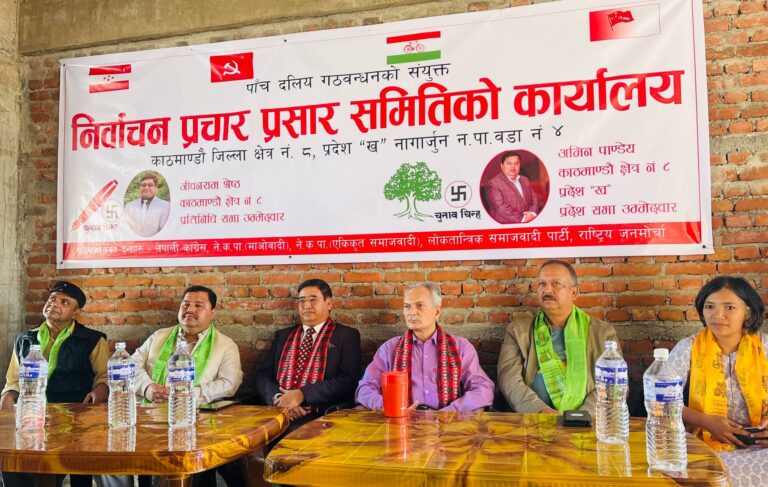 काठमाडौं, २६ असोज। काठमाडौं निर्वाचन क्षेत्र नं ८ मा बाम लोकतान्त्रिक गठबन्धनले प्रचारप्रसार समितिको कार्यालय स्थापना गरि चुनावकेन्द्रित अभियान सुरु गरेको छ । नागार्जुन-४ स्थीत बाफलमा प्रचार कार्यालय शुभारम्भ गरी चुनावकेन्द्रित अभियान सुरु गरिएको हो ।