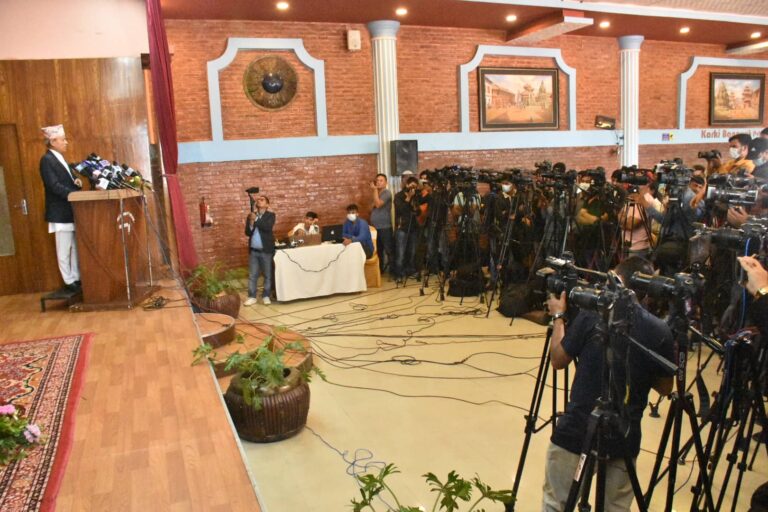 आज (बिहीबार) काठमाडौंमा पत्रकार सम्मेलन गरेर यस्तो बताएका हुन् । उनले विज्ञप्तीमा भनेका छन्,”यहाँ मैले उम्मेदवारी पाएँ कि पाइनँ भन्ने विषयभन्दा नेकपा (एमाले) को घोषित दर्शन, सिद्धान्त, नीति र कार्यक्रमविपरित दक्षिणपन्थी शक्ति र व्यक्तिहरुसँगको साँठगाँठ तथा स्वदेशी र विदेशी प्रतिक्रियावादीहरुसँग सामिप्य र चलखेलले उम्मेदवारीमा दखल भएको त होईन भन्ने चिन्ता हो ।” उनले आफूले देश र जनताको पक्षमा उठाउँदै आएको झण्डा अविचलति निरन्तर समाति नै रहने पनि उल्लेख गरेका छन् । Photo By: Mukunda Kalikote/ReportersNepal