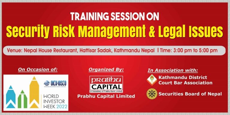 काठमाडौं, ३० असोज । विश्व लगानीकर्ता सप्ताह–२०२२ को अवसरमा प्रभु क्यापिटल लिमिटेडले १ दिने तालिम कार्यक्रम काठमाडौंमा सम्पन्न गरेको छ।