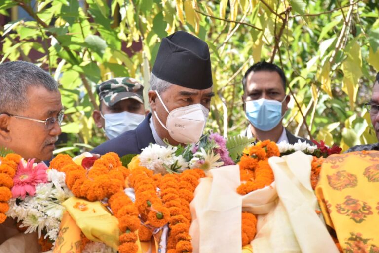 काठमाडौं, ३० असोज । आइतबार निधन भएका शताब्दी पुरुष सत्यमोहन जोशीको पार्थिव शरीरमा प्रधानमन्त्री शेरबहादुर देउवाले नेपालको झण्डा ओढाएर श्रद्धान्जली दिएका छन् ।
