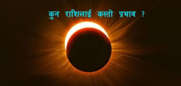 काठमाडौं, कात्तिक ४ । कार्तिक कृष्ण औँसीका दिन यही कात्तिक ८ गते मङ्गलबार लाग्ने ग्रस्तासत खण्डग्रास सूर्यग्रहण स्वाती नक्षत्र र तुला राशिका व्यक्तिलाई अति कष्ट रहेको नेपाल पञ्चाङ्ग निर्णायक विकास समितिले जनाएको छ ।