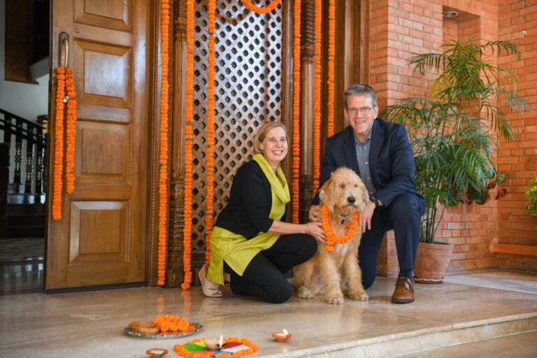 काठमाडौं, कात्तिक ७ । नेपालका लागि अमेरिकी राजदूत डिन थम्प्सन र उनको परिवारले पनि कुकुर तिहार मनाएको छ । अमेरिकी दूतावास काठमाडौंले राजदूत थम्प्सनको परिवार कुकुर तिहारको उत्सवमा सामेल भएको तस्विर सार्वजनिक गरेको छ ।