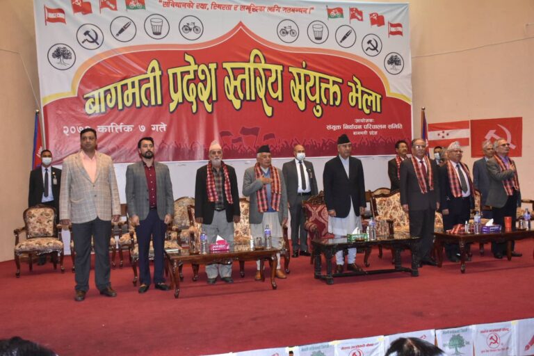 उनले भने,‘अहिले त रक्षक नै भक्षक भए। उपलब्धिलाई माटोमै मिलाउने प्रयास भयो । त्यसविरुद्ध हामीले संयुक्त आवाज उठाएर गठबन्धन गरेका छौँ । एमालेले गरेको गठबन्धन दलका अनुहार हेर्नुस् । हाम्रो गठबन्धनलाई हेर्नुस् । त्यहीँबाट सबै प्रष्ट हुन सकिन्छ । गठबन्धन सत्ताको लागि मात्रै होइन । जनताबाट प्राप्त अधिकार रक्षाका लागि हामीले गठबन्धन गरेका छौँ ।’ Photo By: Mukunda Kalikote/ReportersNepal