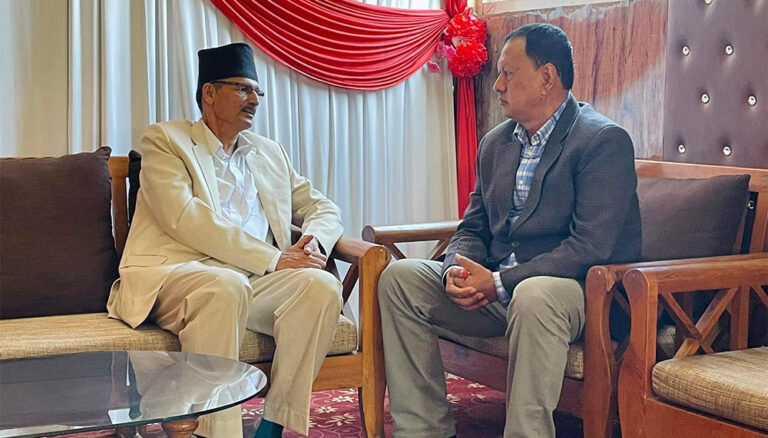 काठमाडौं, ८ कार्तिक । सत्ता गठबन्धनका मुख्य घटक नेपाली कांग्रेस र नेकपा (माओवादी केन्द्र) का सिन्धुपाल्चोकबाट राष्ट्रिय राजनीतिमा चर्चा कमाएका शीर्ष नेताद्धय अग्निप्रसाद सापकोटा र मोहनबहादुर बस्नेतबीच आगामी निर्वाचनमा गठबन्धनलाई जिताउनेबारे छलफल भएको छ ।