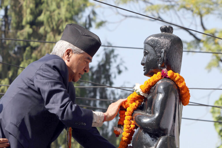 राष्ट्रिय विभूति शङ्खधर साख्वाः प्रतिष्ठानले आज शङ्खधर चोक मध्यपुरथिमिमा आयोजना गरेको नेपाल संवत्का प्रवर्तक राष्ट्रिय विभूति शङ्खधर साख्वाःको प्रतिमामा माल्र्यापर्ण गर्दै उनले निर्वाचनलाई सफल बनाउन सबै राजनीतिक दल तथा सरोकारवाला निकायको सहयोग आवश्यक रहेको बताए ।