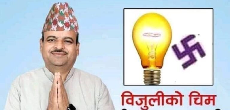 पार्टी निर्देशन मानेको भए यतिबेला पौडेल रमेश आचार्यको तुल ब्यानर बोक्दै ‘सूर्य चिन्हमा भोट हालौं है’ घर दैलो कार्यक्रममा ब्यस्त हुनु पथ्र्यो । तर, त्यसो गरेनन् । स्वतन्त्र उम्मेदवारी दिए । निर्वाचन आयोगले बिजुलीको चिम चुनाव चिन्ह दियो ।
