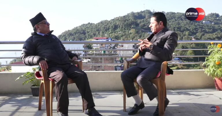 आज विहान गोरखाको भच्चेकमा प्राइम टिभीको चुनावी अभियान ः मंसिर ४ महासंग्राममा पत्रकार ऋषि धमलासँग कुरा गर्दै उनले यस्तो बताएका हुन् । उनले आगामी मंसिर ४ गतेको निर्वाचनमा एमाले र माओवादीबीच सरकार बनाउनेबारे कुनै सहकार्यको सम्भावना नरहेको जिकिर गरे ।