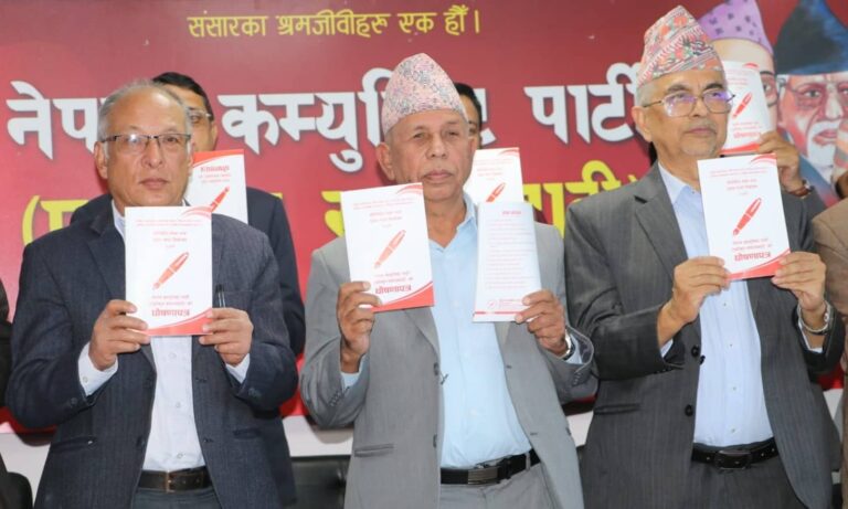 काठमाडौं, १४ कार्तिक । माधव नेपाल नेतृत्वको नेकपा (एकीकृत समाजवादी) को चुनावी घोषणापत्र सार्वजनिक भएको छ । आज (सोमबार) केन्द्रीय कार्यालय आलोकनगरमा पत्रकार सम्मेलनको आयोजना गरेर सो पार्टीले चुनावी घोषणापत्र सार्वजनिक गरेको हो ।