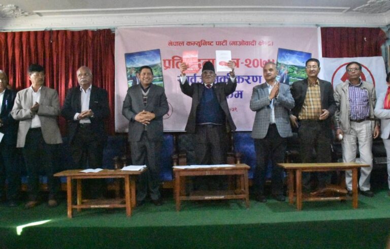 काठमाडौं, १४ कात्तिक । सत्तारुढ दल नेकपा (माओवादी केन्द्र)ले चुनावी घोषणा पत्र सार्वजनिक गरेको छ । आगामी मंसिरमा हुने निर्वाचनका लागि तयार पारिएको उक्त घोषणा पत्र अध्यक्ष पुष्पकमल दाहाल प्रचण्डले आज सार्वजनिक गरेका हुन् ।